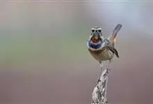 蓝点颏亦称“蓝喉歌鸲”,通称蓝靛颏儿。身体大小和麻雀相似,体长12-13厘米,体重17-18克。头部、上体主要为土褐色。眉纹白色。尾羽黑褐色,基部栗红色。颏部、喉部辉蓝色,下面有黑色横纹。下体白色。…全部>>