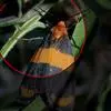 翅正面淡灰褐色,多褐色波纹状线,前后翅的外缘和亚缘线3条,中横线1条,前翅中室5条,从前室前缘到后翅cu2室有1列眼状纹,以两翅的m3室斑及cu1室斑为最显著,内半部橘红色,外半部黑色,…全部>>