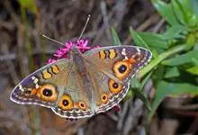 美眼蛱蝶为鳞翅目、蛱蝶科、眼蛱蝶属节肢动物。除西北外,全国各地均有分布,国外分布于日本及东南亚。幼虫以马鞭草科的过江藤、车前草科的车前草等为食。全部>>