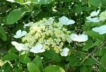 蝴蝶戏珠花 Miq.)是荚蒾科荚蒾属植物。落叶灌木,高达3米;当年小枝浅黄褐色。叶较狭,宽卵形或矩圆状卵形,有时椭圆状倒卵形。花序直径4-10厘米,外围有4-6朵白色、木型的不孕花。果实先红色后变黑色,…全部>>