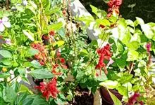 一串红,又称爆仗红、象牙红,为唇形科鼠尾草属植物。花序修长,色红鲜艳,花期又长,适应性强,为中国城市和园林中最普遍栽培的草本花卉。原产巴西、南美洲。喜温暖和阳光充足环境。不耐寒,耐半阴,忌霜雪和高温,…全部>>