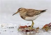 斑胸滨鹬小中型涉禽;体长23厘米,翼展37-45厘米,体重126克。嘴形直,有时微向上或向下弯曲;鼻沟长度远超过上嘴的1/2;羽色暗淡,雌雄羽色及大小大都相同;跗蹠后侧具盾状鳞,…全部>>