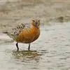 红腹滨鹬,是鹬科、滨鹬属的小型涉禽,体长23-25厘米,嘴较短而直、黑色,脚亦甚短、绿色。体较粗胖。夏季上体灰褐色具黑色中央纹,背具棕栗色和白色斑纹和羽缘,头侧和整个下体栗红色。冬季棕红色消失,…全部>>