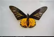金裳凤蝶是凤蝶科、裳凤蝶属的动物。金裳凤蝶身体呈黑色,头、颈和胸侧有红毛,腹部有黑黄两色相间条纹,雄蝶前翅黑色,具黑天鹅绒光泽,各脉两侧灰白色,后翅金黄色,各室外缘有等腰三角形黑斑1枚,斑内侧有晕,…全部>>