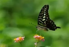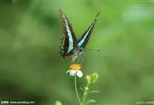 青带凤蝶Graphium sarpedon ,又名青凤蝶,是最普遍的中型凤蝶,飞行速度很快。青带凤蝶的翅膀中央有许多浅蓝色的斑点,很整齐地排列成一条直线。这些斑点由上而下逐渐变大,就像一条青色的带子。全部>>