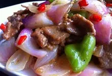 小炒黄牛肉是以牛肉、青尖椒、红尖椒等食材制成的一道菜品,香味浓郁,味道鲜美,…全部>>