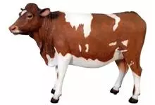 西门塔尔牛是偶蹄目牛科牛属哺乳动物。 体躯长,呈圆筒状,肌肉丰满;头较长,面宽,颈长中等,角较细而向外上方弯曲,尖端稍向上;前躯较后躯发育好,胸深,尻宽平,四肢结实,大腿肌肉发达,乳房发育好。…全部>>