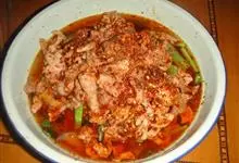 特色传统名菜,属川菜系。主料瘦黄牛肉。辅料豆芽、鸭血、肉汤、莴笋或者其他蔬菜、粉丝。调料葱、精盐、酱油、花椒、味精、熟菜油、干辣椒、辣椒油、胡椒粉、醪糟汁、湿淀粉、郫县豆瓣酱。因菜中牛肉片是在辣味汤…全部>>