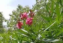 夹竹桃,又名红花夹竹桃、欧洲夹竹桃,是夹竹桃科夹竹桃属的一种常绿直立大灌木,枝条灰绿色,含水液。叶披针形,3叶轮生。聚伞花序顶生,花冠粉红至深红色,花冠漏斗状,有特殊香味。蓇葖果,圆柱形。种子长圆形,…全部>>