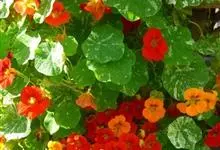 旱金莲是旱金莲科旱金莲属蔓生一年生草本植物。叶互生,叶柄向上扭曲,盾状,叶圆形,具波状浅缺刻,下面疏被毛或有乳点;花黄、紫、桔红或杂色,花托杯状,花瓣为圆形,边缘具缺刻;果实为扁球形;花果期6-10月,…全部>>