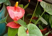 花烛,别名红鹅掌、红掌、安祖花等,为天南星科花烛属的一种多年生草本植物。其茎矮;叶互生,叶片革质,有光泽,阔心形、圆心形,先端钝或渐尖,基部深心形;肉穗花序有细长花序梗,佛焰苞深红色或橘红色,…全部>>
