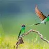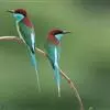 蓝颊蜂虎:是蜂虎科、蜂虎属的鸟类,共有2个亚种。体长27-33厘米,翼展46-49厘米,体重38-50克。嘴形细长而下弯,先端尖,…全部>>