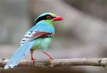 蓝喉蜂是蜂虎科蜂虎属鸟类。体长26-28厘米,嘴长而弯曲,有明显细长的中央尾羽。头部、颈部和背部为巧克力色,有黑色眼纹。喉部、腰部和尾羽为蓝色。腹部和两翼为绿色。幼鸟外观似成鸟,头部、颈部和背部为绿色,…全部>>