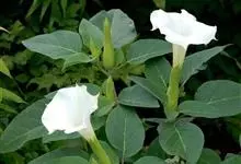 曼陀罗,茄科曼陀罗属一年生大型草本植物,全株光滑。有臭气;叶呈广卯形,边缘具不规则波状浅齿裂;花单生于枝杖间或叶腋,直立,有短梗;花萼是筒状裂片三角形,颜色为白色或淡紫色;果实为蒴果卵状,…全部>>