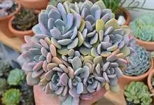 蓝石莲是景天科、拟石莲花属的多肉植物。茎部粗壮,成熟植株茎部木质化。叶片莲座型密集排列,株径不会很大,叶片相对较薄,常年绿色,表面布有白色粉末,中部凹陷,呈倒水滴状。叶尖较尖,叶缘光滑无褶皱,…全部>>