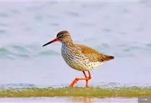 红脚鹬:体长28厘米,上体褐灰,下体白色,胸具褐色纵纹。飞行时腰部白色明显,次级飞羽具明显白色外缘。尾上具黑白色细斑。虹膜黑褐色,嘴长直而尖,基部橙红色,尖端黑褐色。脚较细长,亮橙红色,…全部>>