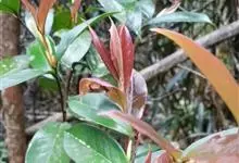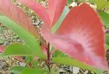 红叶石楠 是蔷薇科,石楠属杂交种,为常绿小乔木或灌木,乔木高可达5米、灌木高可达2米。叶片革质,长圆形至倒卵状、披针形,叶端渐尖,叶基楔形,叶缘有带腺的锯齿,花多而密,复伞房花序,花白色,梨果黄红色,…全部>>