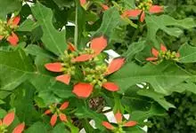 猩猩草:常绿或半常绿灌木,盆栽时株高0.5米-2米,在亚热带地区可长到6米以上。茎直立而光滑,单叶互生,卵状椭圆形至阔披针形,具不规则的深缺刻。长10-15厘米。花小,有蜜腺,排列成密集的伞房花序。…全部>>