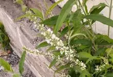 白背枫,马钱科醉鱼草属植物,常绿小灌木,高1-1.5米。嫩枝条四棱形,老枝条圆柱形;叶对生狭椭圆形或披针形,绿色无毛;总状花序窄而长,花冠芳香白色或淡绿色;蒴果椭圆状;种子灰褐色;花期1-10月,…全部>>
