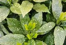 洒金桃叶珊瑚,常绿灌木,原产中国台湾及日本,属于藤本类。 不甚耐寒。小枝粗圆。叶对生,叶片椭圆状卵圆形至长椭圆形,油绿,光泽,散生大小不等的黄色或淡黄色的斑点,先端尖,边缘疏生锯齿。属桃叶珊瑚属、…全部>>