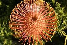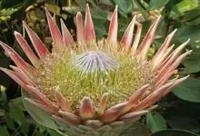 帝王花,山龙眼科帝王花属多年生常绿灌木植;茎干粗壮,叶色翠绿光亮;花朵呈圆球状;其苞片有的完全打开,使花朵呈扁平状;有的则呈半闭合状态,使花朵相对修长,…全部>>