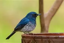 海南蓝仙鹟,Cyornis hainanus ,鹟科蓝仙鹟属的一种小型鸟类,体长13~15厘米。上体包括两翅和尾表面暗蓝色,前额和眼上眉斑较鲜亮。喉、胸暗蓝色,下胸和两胁蓝灰色,其余下体白色。…全部>>