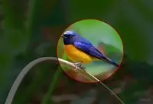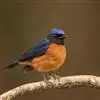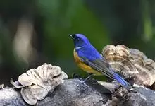 棕腹蓝仙鹟,Niltava vivida,鹟科仙鹟属的一种小型鸣禽,善在空中飞捕昆虫,中等体型18厘米,上体蓝,下体棕色,具黑色眼罩,胸橘黄渐变成臀部的皮黄色。国内分布于四川、云南、西藏和台湾等地。…全部>>