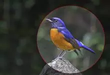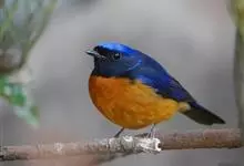 棕腹蓝仙鹟,Niltava vivida,鹟科仙鹟属的一种小型鸣禽,善在空中飞捕昆虫,中等体型18厘米,上体蓝,下体棕色,具黑色眼罩,胸橘黄渐变成臀部的皮黄色。国内分布于四川、云南、西藏和台湾等地。…全部>>