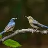 棕腹大仙鹟:体重24-28克,体长15-17厘米,是一种小型的色彩亮丽的鹟。雄鸟上体深蓝,下体棕色,脸黑,额、颈侧小块斑、翼角及腰部亮丽闪辉蓝色。与棕腹仙鹟易混淆,区别在色彩较暗。雌鸟灰褐,…全部>>
