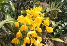 束花石斛是兰科石斛属植物。茎粗厚,肉质,下垂或弯垂,圆柱形,不分枝,具多节。叶二列,互生于整个茎上,纸质,长圆状披针形。伞状花序近无花序柄,每2-6花为一束,侧生于具叶的茎上部;花黄色,…全部>>