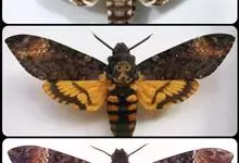 鬼脸天蛾,是鳞翅目天蛾科面形天蛾属动物。成虫翅展100~125毫米,体黑褐色;胸背有骷髅形斑纹;卵圆球形,直径约2毫米,淡黄绿色,表面光滑;老熟幼虫体长70~90毫米,蛹体长约56毫米;前翅为褐色,…全部>>