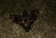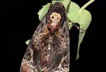 鬼脸天蛾,是鳞翅目天蛾科面形天蛾属动物。成虫翅展100~125毫米,体黑褐色;胸背有骷髅形斑纹;卵圆球形,直径约2毫米,淡黄绿色,表面光滑;老熟幼虫体长70~90毫米,蛹体长约56毫米;前翅为褐色,…全部>>