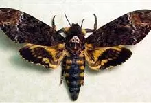 鬼脸天蛾,是鳞翅目天蛾科面形天蛾属动物。成虫翅展100~125毫米,体黑褐色;胸背有骷髅形斑纹;卵圆球形,直径约2毫米,淡黄绿色,表面光滑;老熟幼虫体长70~90毫米,蛹体长约56毫米;前翅为褐色,…全部>>