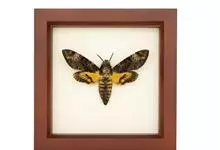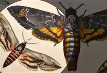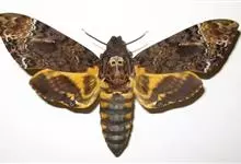 鬼脸天蛾,是鳞翅目天蛾科面形天蛾属动物。成虫翅展100~125毫米,体黑褐色;胸背有骷髅形斑纹;卵圆球形,直径约2毫米,淡黄绿色,表面光滑;老熟幼虫体长70~90毫米,蛹体长约56毫米;前翅为褐色,…全部>>