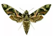 夹竹桃天蛾是鳞翅目天蛾科昆虫。又称夹竹桃白腰天蛾、巴纹天蛾。成虫呈青黑色,四翅正反面都以橄榄色为主调,而前翅中部则略显粉紫色;前翅基部灰白色,中央有1个黑点,…全部>>