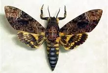 鬼脸天蛾,是鳞翅目天蛾科面形天蛾属动物。成虫翅展100~125毫米,体黑褐色;胸背有骷髅形斑纹;卵圆球形,直径约2毫米,淡黄绿色,表面光滑;老熟幼虫体长70~90毫米,蛹体长约56毫米;前翅为褐色,…全部>>