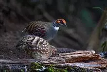 红腹角雉属于鸡形目雉科,雄鸟体羽及两翅主要为深栗红色,满布具黑缘的灰色眼状斑,下体灰斑大而色浅。雌鸟上体灰褐色,下体淡黄色,杂以黑、棕、白斑。全部>>