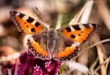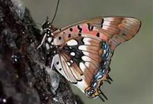 优红蛱蝶:翼展4.5-12厘米。是一种美丽的蝴蝶。色彩鲜艳,花纹相当复杂。前足相当退化,短小无爪。前翅R脉5条,常共柄。卵呈半圆球形。幼虫头上常有突起,体节上有枝刺,腹足趾钩1至3序中列式。蛹为垂蛹。全部>>