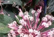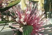 烟火树 Merr.)是唇形科、大青属常绿灌木或小乔木,株高可达4米。幼枝方形,墨绿色。叶对生,长椭圆形或披针形,先端尖,全缘或波状缘。纸质,叶背暗紫红色。聚伞状圆锥花序,顶生,小花多数,聚生成团,…全部>>