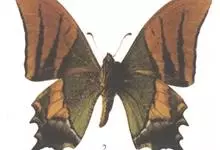 黄带枯叶蝶,蛱蝶科瑶蛱蝶属的一个物种。展翅宽60~70mm。雄虫翅膀表面底色黑褐色,中央具贯穿上下翅的橙黄色宽纵带;翅膀腹面底色灰褐色,纵带不明显,呈米白色。雌虫翅膀腹面不具米白色纵带。全部>>