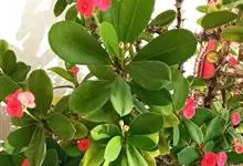 铁海棠为大戟科大戟属蔓生灌木植物;茎多分枝,具纵棱,呈旋转状;叶互生,通常集中于嫩枝上;每个花序基部边缘具微小的红色尖头;苞叶先端圆且具小尖头,无柄,上面鲜红色,下面淡红色;苞片丝状;子房光滑无毛,…全部>>