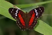 优红蛱蝶:翼展4.5-12厘米。是一种美丽的蝴蝶。色彩鲜艳,花纹相当复杂。前足相当退化,短小无爪。前翅R脉5条,常共柄。卵呈半圆球形。幼虫头上常有突起,体节上有枝刺,腹足趾钩1至3序中列式。蛹为垂蛹。全部>>