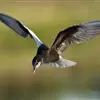 白翅浮鸥是鸥科、浮鸥属下的一种小型水鸟。夏羽嘴暗红色,脚红色。头、颈、翕和下体黑色。翼灰色,翼上小覆羽白色,腰、尾亦为白色,飞翔时除尾和翼有部分白色外,通体黑色。冬羽嘴黑色,脚暗红色,头、颈和下体白色,…全部>>