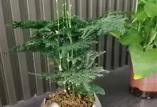 蓬莱松是天门冬科、天门冬属多年生丛生草本植物。宿存,圆柱形肉质根,纵截面为绿色和表面灰色。植株高可达3米。茎呈圆柱形或近四边形,底部木质化,具有灰色或灰褐色。幼嫩的茎在每个节上都被紫绿色鳞片包,…全部>>
