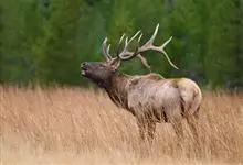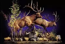 驯鹿,又名角鹿。是鹿科驯鹿属下的唯一一种动物。身长约200厘米,肩高100-120厘米。雌雄皆有角,角的分枝繁复是其外观上的重要特征。长角分枝繁复,有时超过30叉,蹄子宽大,悬蹄发达,尾巴极短。…全部>>