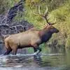 驯鹿,又名角鹿。是鹿科驯鹿属下的唯一一种动物。身长约200厘米,肩高100-120厘米。雌雄皆有角,角的分枝繁复是其外观上的重要特征。长角分枝繁复,有时超过30叉,蹄子宽大,悬蹄发达,尾巴极短。…全部>>
