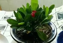 铁海棠为大戟科大戟属蔓生灌木植物;茎多分枝,具纵棱,呈旋转状;叶互生,通常集中于嫩枝上;每个花序基部边缘具微小的红色尖头;苞叶先端圆且具小尖头,无柄,上面鲜红色,下面淡红色;苞片丝状;子房光滑无毛,…全部>>