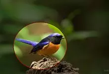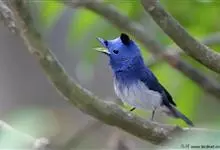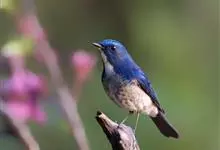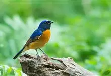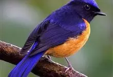 棕腹大仙鹟:体重24-28克,体长15-17厘米,是一种小型的色彩亮丽的鹟。雄鸟上体深蓝,下体棕色,脸黑,额、颈侧小块斑、翼角及腰部亮丽闪辉蓝色。与棕腹仙鹟易混淆,区别在色彩较暗。雌鸟灰褐,…全部>>