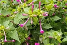 即紫茉莉,英文名:Four-o'clock,Marvel of Peru,为紫茉莉科、紫茉莉属多年生草本植物,一年生栽培。株高50~80cm。根粗壮,茎多分枝而散生。叶对生,卵形或心脏形。花数朵簇生…全部>>