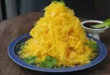菠萝饭,又叫凤梨饭,是以菠萝、米饭等食材制成的一道美食。菠萝内含维生素A、B、C,钙、磷、钾等矿物质,脂肪,蛋白质等。其中有一种叫“菠萝脘酶”的物质能分解蛋白质,溶解阻塞于组织中的纤维蛋白和血凝块。…全部>>